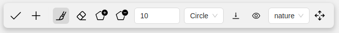 ![]() | Brush size in pixels. <br />Note: Visible only when Brush or Eraser are selected. |
