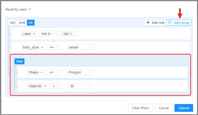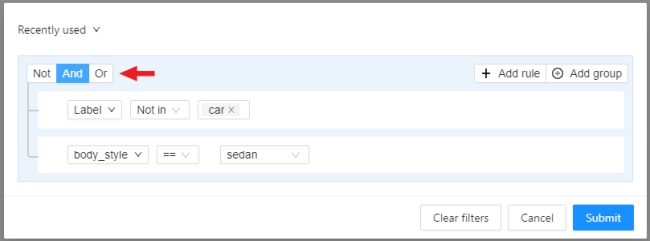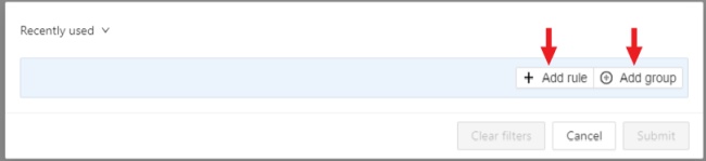 Click Submit to apply the filter or if you want multiple rules to be connected by different operators, use groups.
