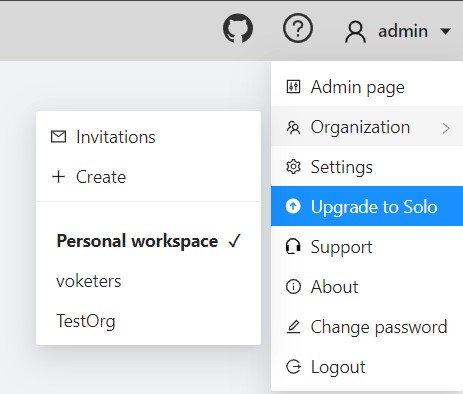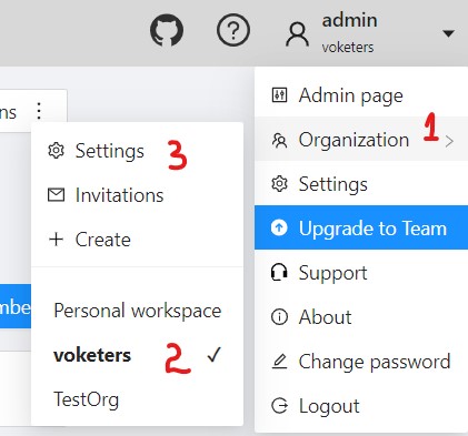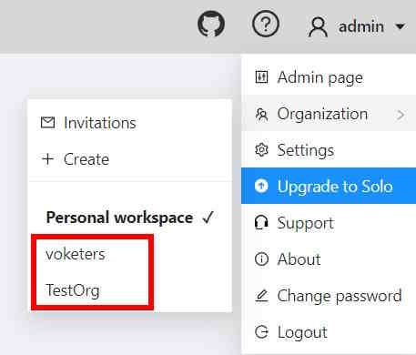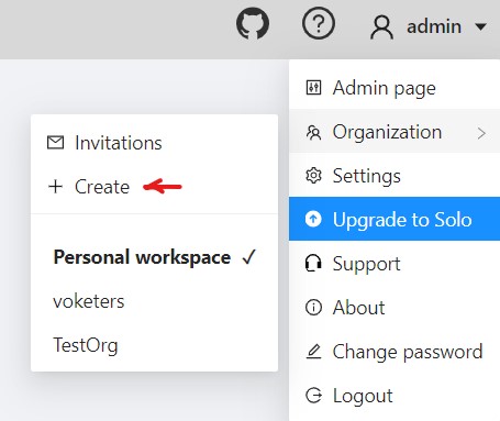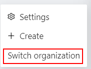 Note, that if you've created more than 10 organizations, a Switch organization line will appear in the drop-down menu.
