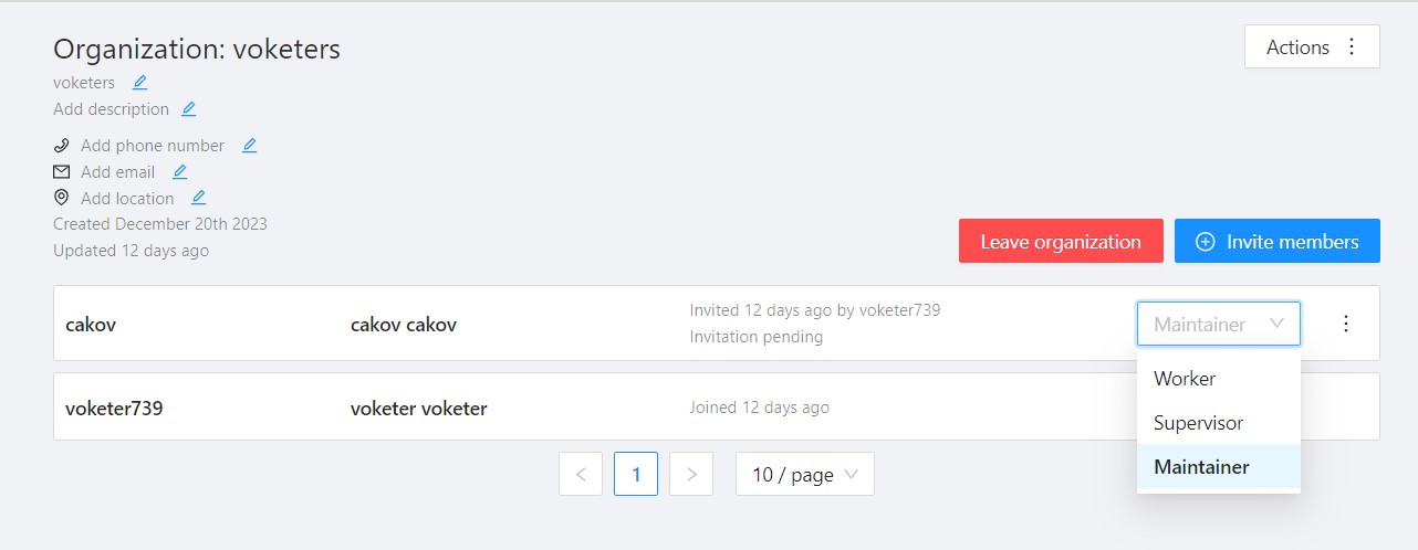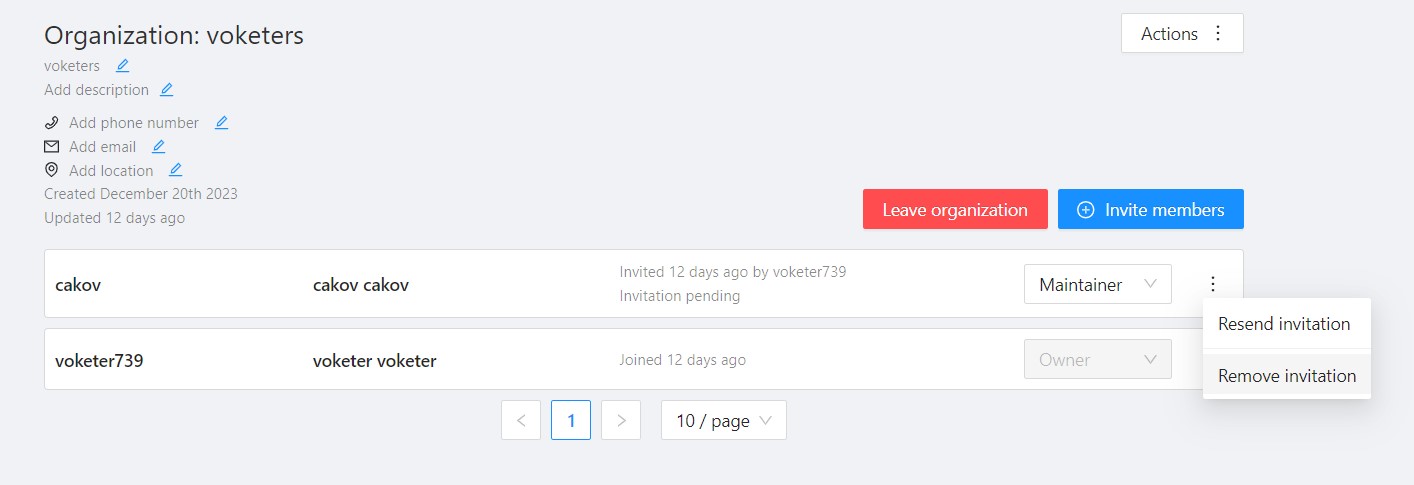 Organization page is a place, where you can edit the Organization information and manage Organization members.