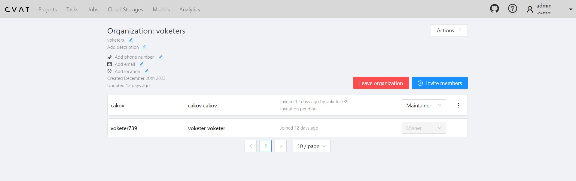 Note: Removing an organization will delete all related resources (annotations, jobs, tasks, projects, cloud storage, and so on).