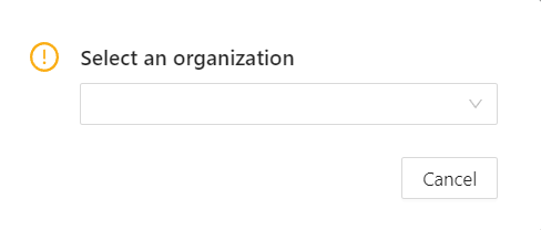 Click on it to see the Select organization dialog, and select organization from drop-down list.
