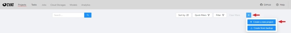 To create a project, go to the projects section by clicking on the Projects item in the top menu.